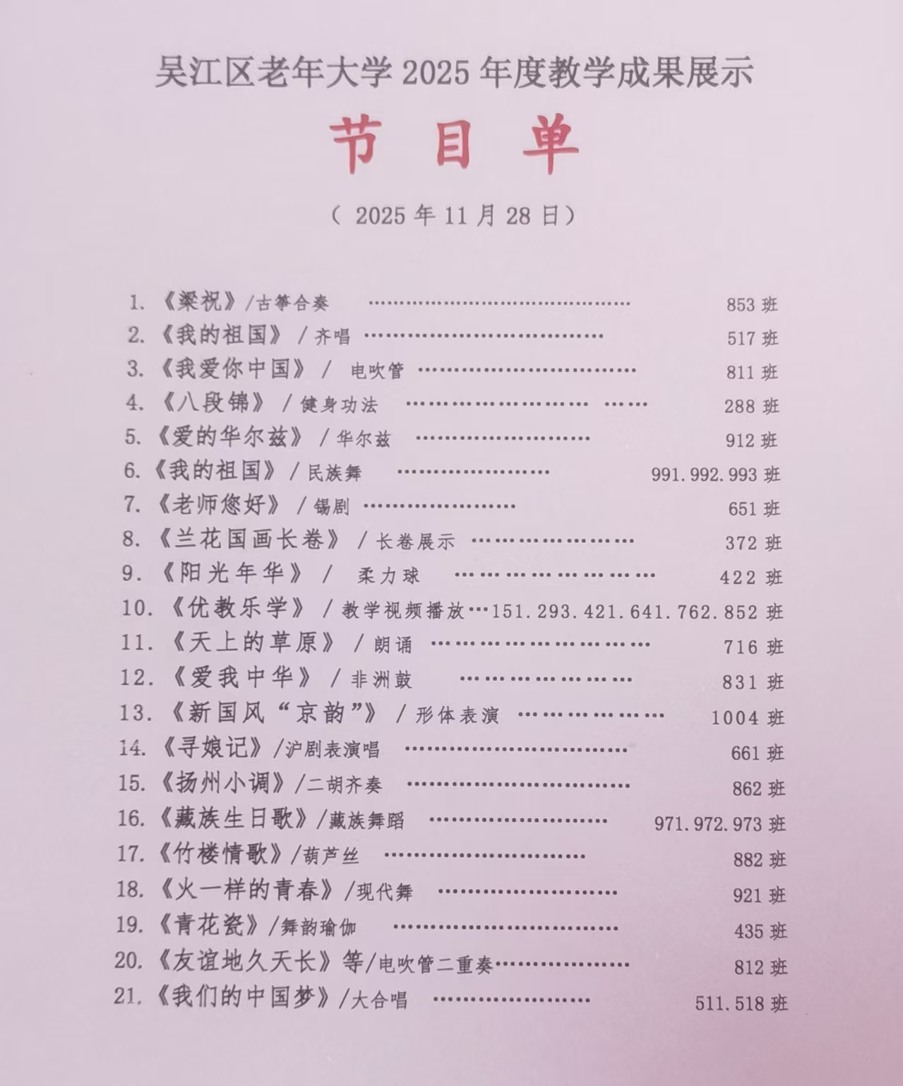 陈瑞荣在讲话中首先总结了2025度的办学成果。他说,即将过去的2025年,是我校被授予全国老年大学标准示范校后的开局之年。今年暑期,学校乘势而上,在吴江农业银行的大力支持下,投入50万元顺利完成智慧校园项目建设,为教学质量提升筑牢了技术根基。春学期,学员入学达17172968人次,创下疫情后新高;秋学期学员入学达1918名、3368人次比春学期分别又增长了11.7%13.5%,再历史新高。现在越来越多的老年人选择走进“老大”校园,在这里追逐热爱、实现自我价值。