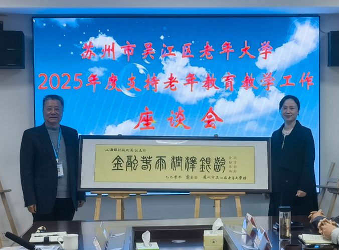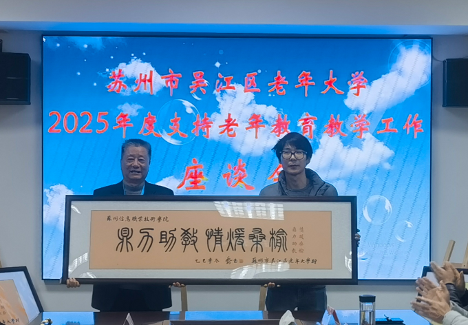 2025年12月30日,在三楼会议室,吴江区老年大学召开了支持老年教育教学工作座谈会,并向吴江区常青爱心帮困会、苏州信息职业技术学院、中国农业银行股份有限公司苏州长三角一体化示范区分行、上海银行苏州吴江支行等支教单位赠匾。