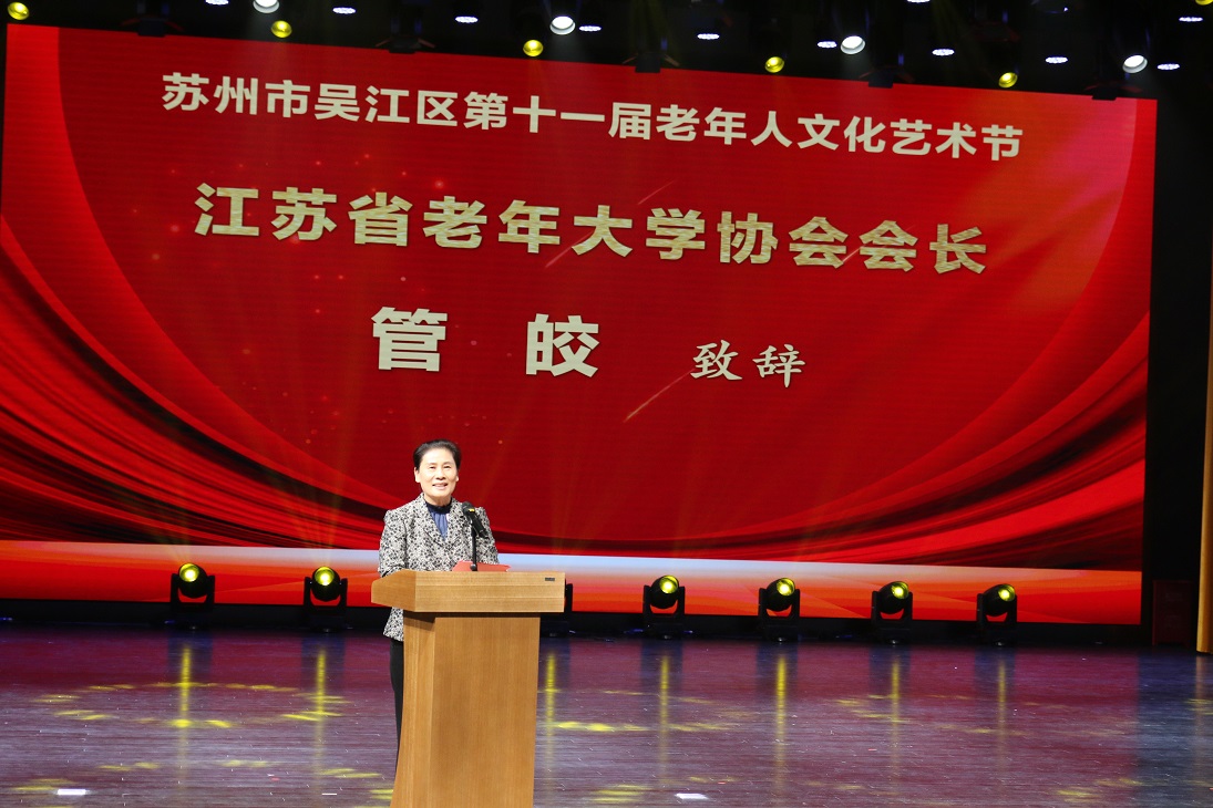 今年,广大老年朋友们通过歌舞、征文、书画、摄影等一系列丰富多彩的文化艺术活动,用歌声传递喜悦,用舞姿展现活力,用笔墨挥洒豪情,用巧手创造美好,生动描绘了当代老年人健康向上、乐享生活的精神风貌。吴江区这样充满活力、富有成效的老年人文化艺术活动,正是我们全省老年大学系统所倡导和追求的目标。希望吴江区老年大学不断巩固全国老年大学标准示范校创建成果,在推动我省老年教育高质量发展进程中走在前、当表率、做示范,共同推动我省老年教育事业与老年文化事业的繁荣发展。