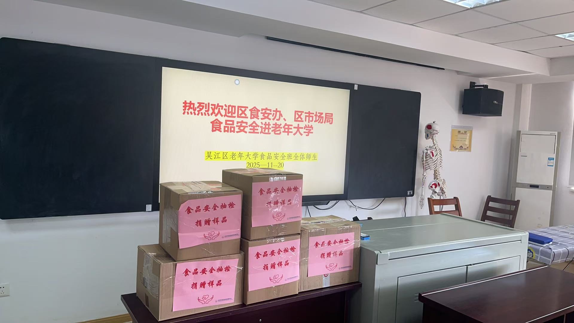 月20日,苏州市检验检测中心来到吴江区老年大学食品安全、营养与健康班,向全体师生捐赠了五大箱食品安全抽检合格样品。