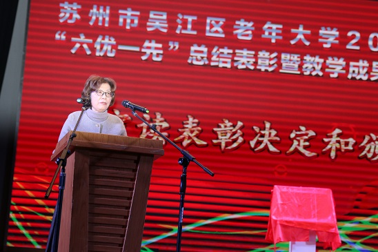 会议宣布,陈维麟等214名同志为“优秀学员”,姚自娟等24名同志为“优秀班长”,邹兵等13名同志为“优秀教师”,沈德官等6名同志为“优秀工作者”,王晓宏等12名同志获“教师突出贡献奖”,摄影创作进阶班等25个班级为“先进班集体”。会议还举行了吴江区老年大学《七彩晚霞》诗文集首发和课程结业证书颁发仪式,预计今年底我校将有1737名学员能获得结业证