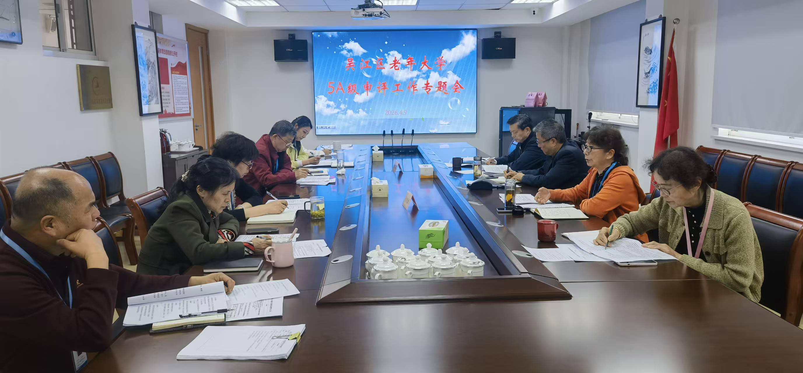 4月9日上午,在三楼会议室,区老年大学召开了5A级社会组织申评工作专题会议,常务副校长傅冬梅作工作安排,校长陈瑞荣讲话。