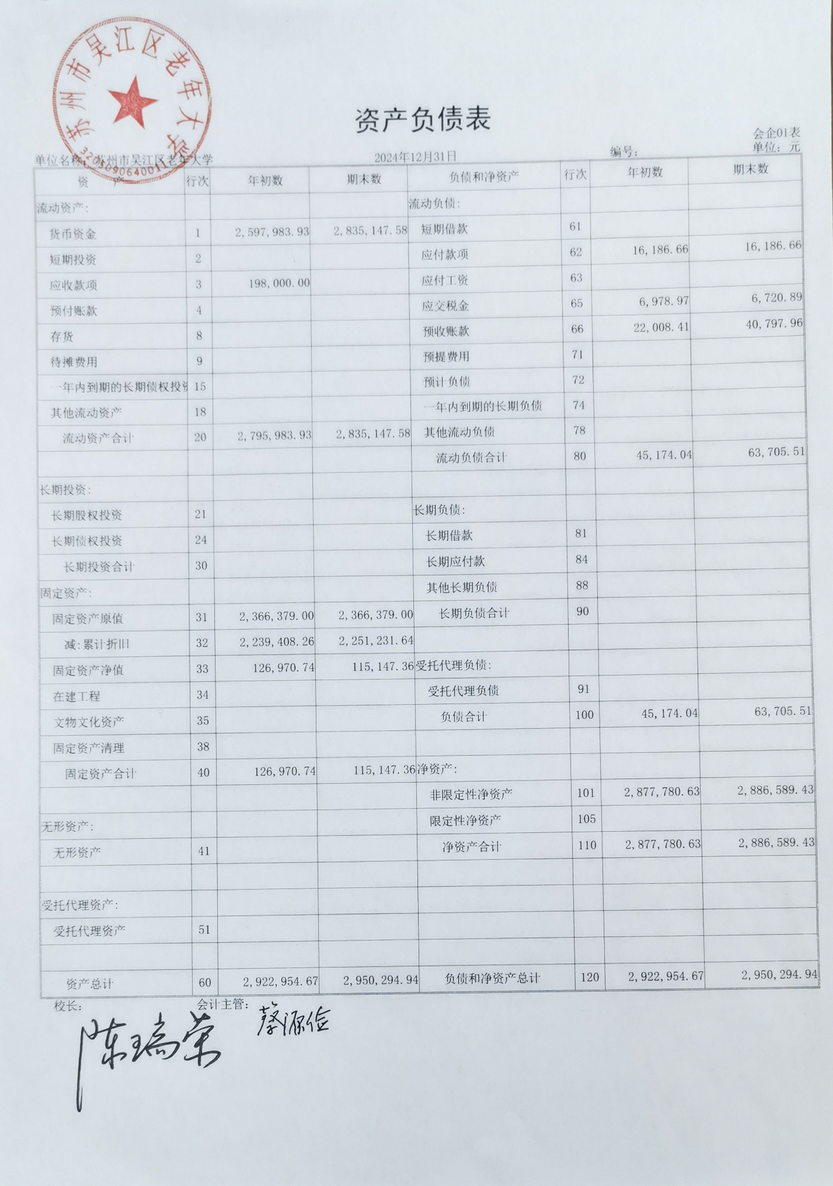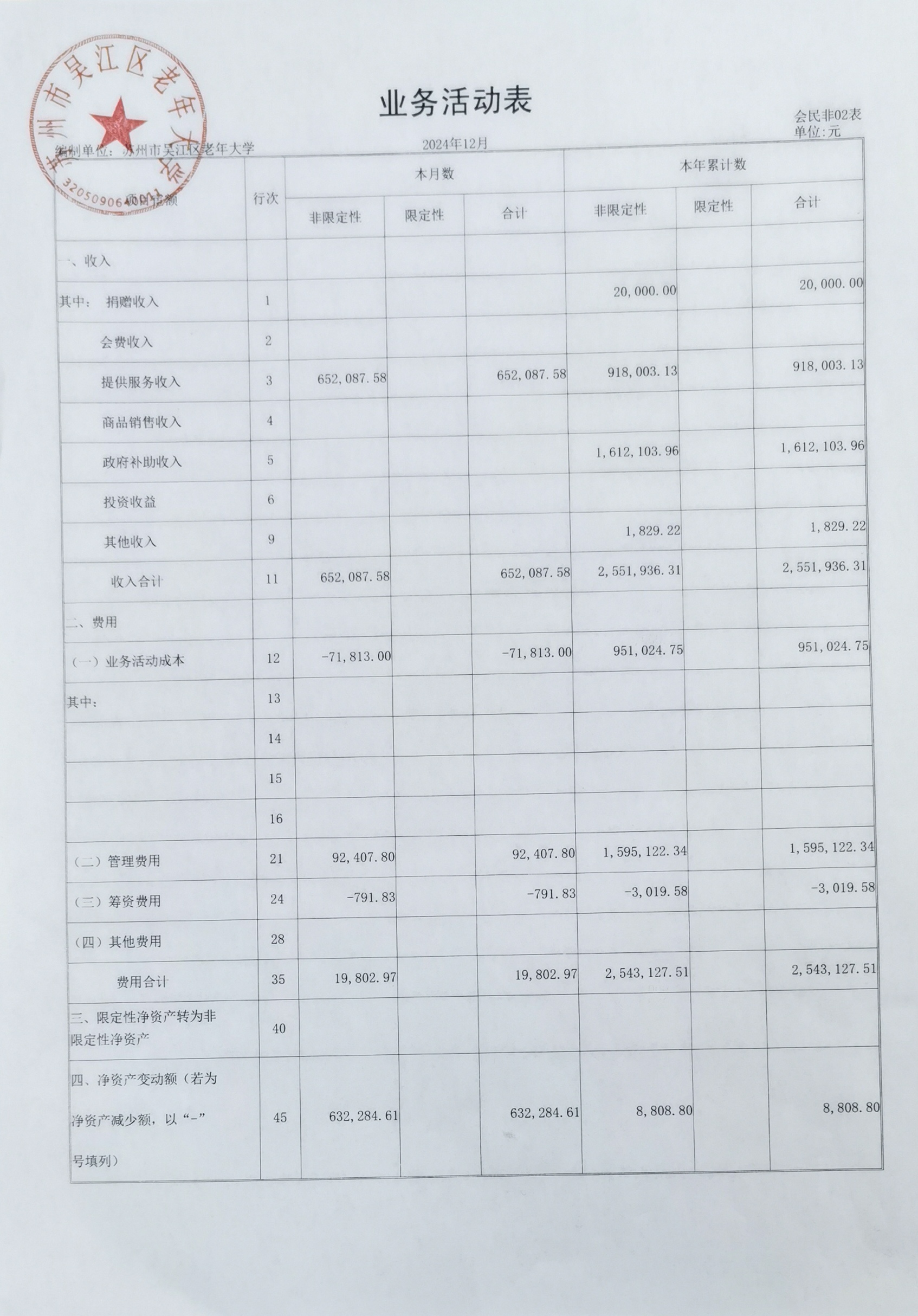 2024年资产负债表与业务活动表公示